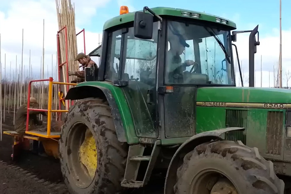 La capacité de cette planteuse de bambous est de 3 000 à 4 000 bâtons par jour.